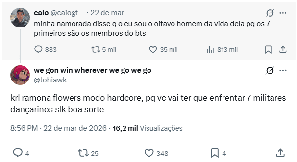 e depois eu dei aquele famoso autoquote para dizer que não me garanto contra nenhum dos bts no x1, mas que seria questão de honra derrotar o jk, porque eu seria buffado pela raiva irracional que tenho do nome dele. ouviram armies, né? nada contra o cara, tudo contra o nome.